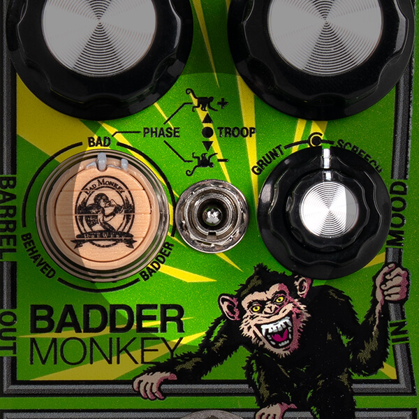 It not only includes a faithful reproduction of the original circuit and sound but far exceeds its predecessor in features and versatility. From its three completely independent Behaved™, Bad™, and Badder™ overdrive circuits giving you three pedals in one, to its unique parallel blending enabled by the patent-pending Barrel Control™, further enhanced by optional out-of-phase combinations, to the all-three-in-parallel Troop™mode, the Badder Monkey™ represents unheard-of variability in an affordable compact overdrive pedal!